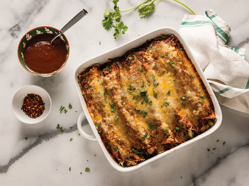 The homemade enchilada sauce really makes this dish, but store-bought sauce can be substituted if you’re pressed for time.